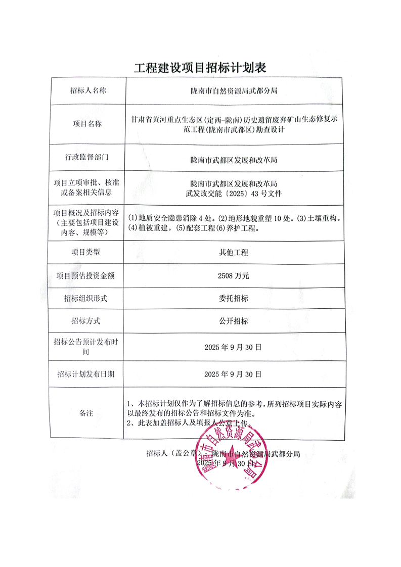甘肅省黃河重點生態(tài)區(qū)(定西-隴南)歷史遺留廢棄礦山生態(tài)修復示范工程(隴南市武都區(qū))勘查設計