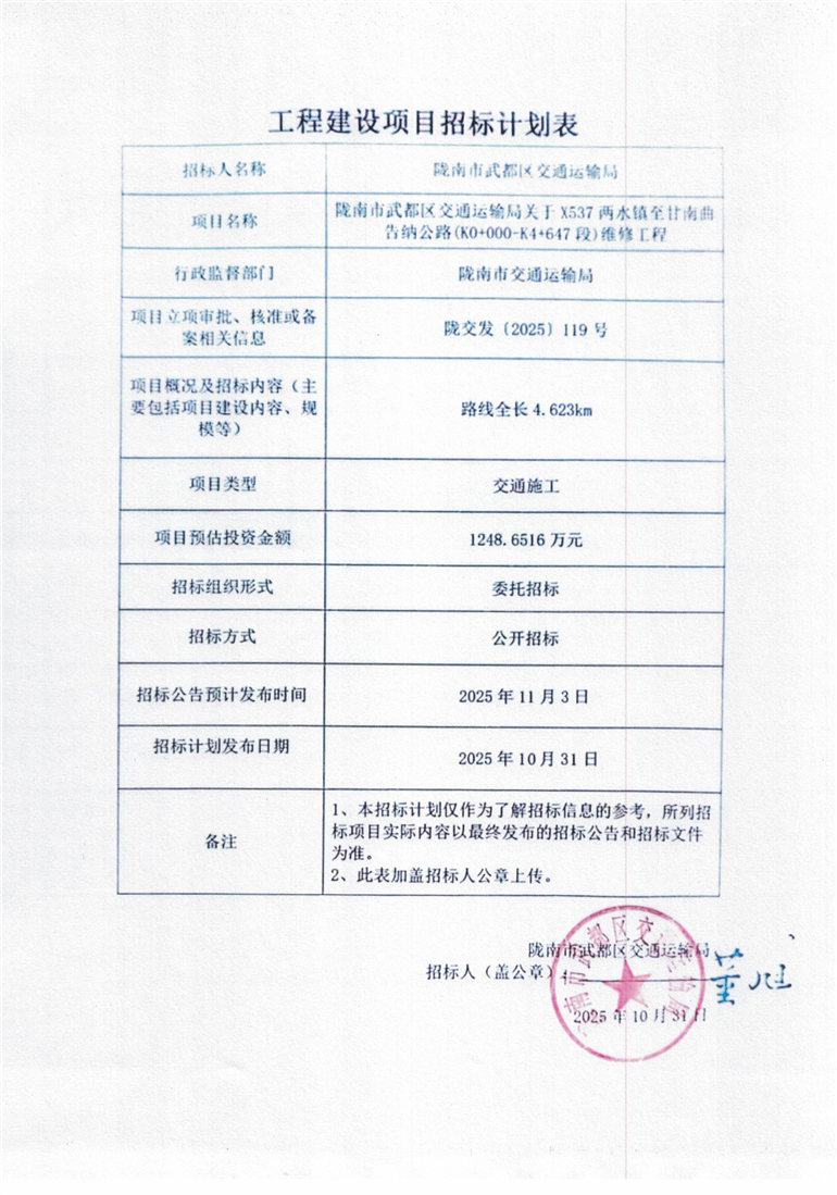 X537兩水鎮(zhèn)至甘南曲告納公路(K0+000-K4+647段)維修工程